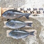 ※うねり波がやや🌊高い中、クチブトクロ47㎝、46,5㎝、36㎝2枚など、合計5枚持ち帰り、お見事でした✨🎉。