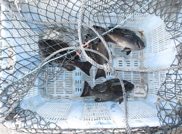 その他の磯瀬では、フカセ釣りのお客様は、クチブトクロ38㎝、37㎝、35㎝~30㎝、オナガクロ足裏サイズを、釣られてました。小ぶりの魚はリリースされたそうです。