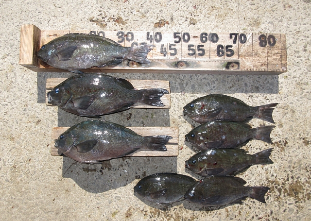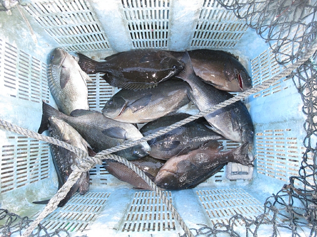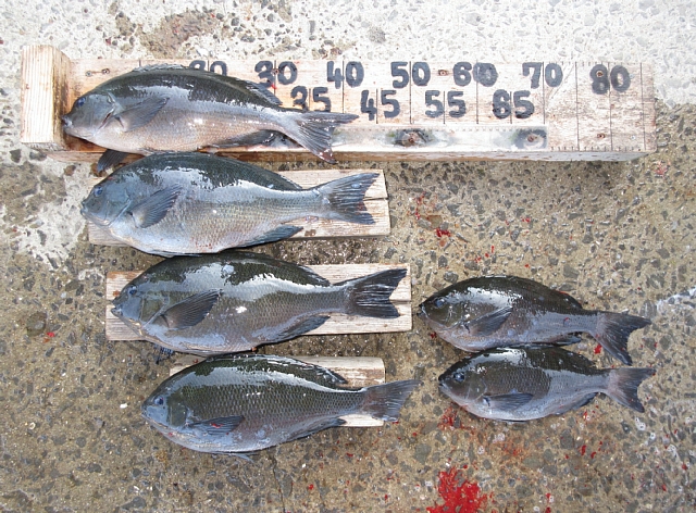 八木さん🙂 クチブトクロ42,5㎝(1,0㎏)、42㎝(1,15㎏)、41㎝(1,15㎏)、40㎝(0,95㎏)、38,5㎝、36㎝~33㎝を、フカセ釣りで釣られたそうです。その他、クチブトクロ30㎝、オナガクロ足裏サイズも10枚以上釣られたそうですが、リリースされたそうです。合計10枚持ち帰えられてました。