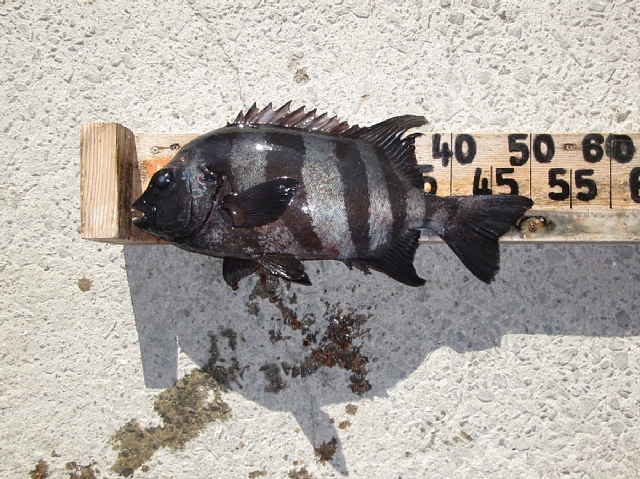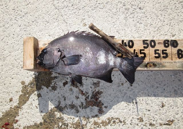 八木さん🙂 石鯛50,5㎝(2,06㎏)を、底物(石鯛)仕掛けで釣られたそうです。付け餌はガンガゼで、釣られたそうです。