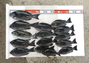 その他の磯瀬では、フカセ釣りのお客様は、クチブトクロ36㎝~33㎝~30㎝、オナガクロ30㎝、足裏サイズを、釣られてました。小ぶりの魚はリリースされたそうです。