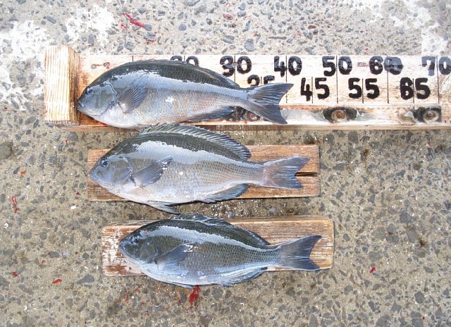 平野さん🙂 クチブトクロ42㎝、40,5㎝、37,5㎝を、フカセ釣りで釣られたそうです。