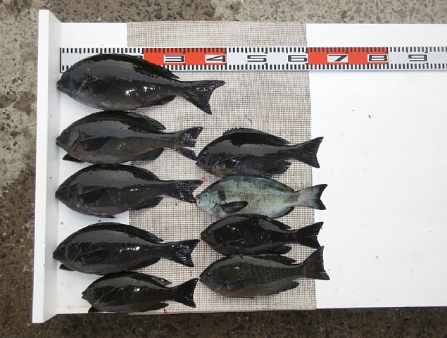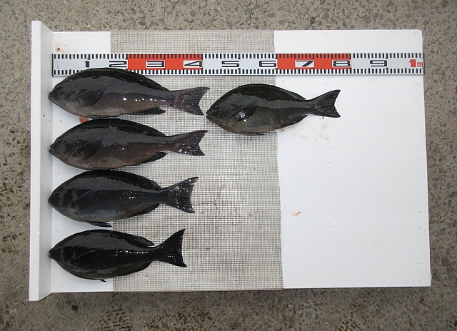 大久保さん🙂 クチブトクロ40㎝、35㎝、34,5㎝、33㎝、30㎝を、フカセ釣りで釣られたそうです。その他、オナガクロ足裏サイズも10枚以上釣られたそうですが、リリースされたそうです。合計9枚持ち帰えられてました。