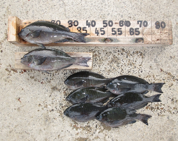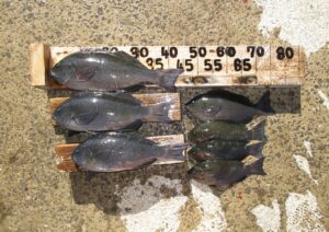 大津さん🙂 クチブトクロ40㎝、37,5㎝、37㎝、35㎝4枚、34㎝を、フカセ釣りで釣られたそうです。その他、クチブトクロ33㎝、30㎝、オナガクロ30㎝~足裏サイズも釣られたそうですが、小ぶりの魚はリリースされたそうです。合計14枚持ち帰えられてました。