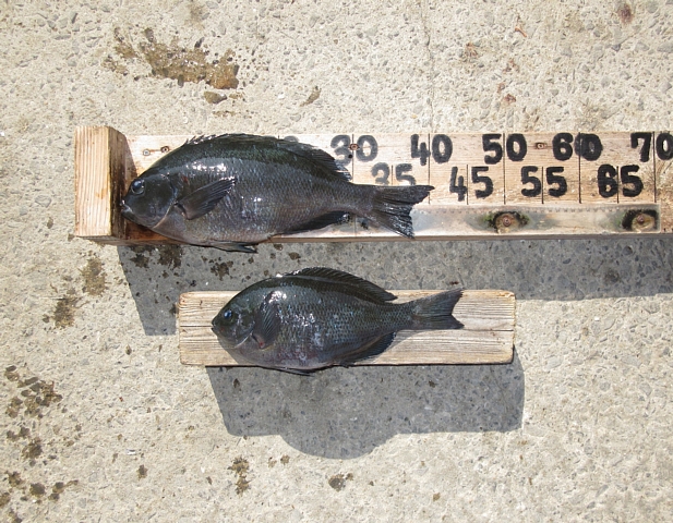 川津さん🙂 クチブトクロ40,7㎝、33㎝を、フカセ釣りで釣られたそうです。その他、クチブトクロ30㎝、オナガクロ30㎝~足裏サイズも釣られたそうですが、リリースされたそうです。