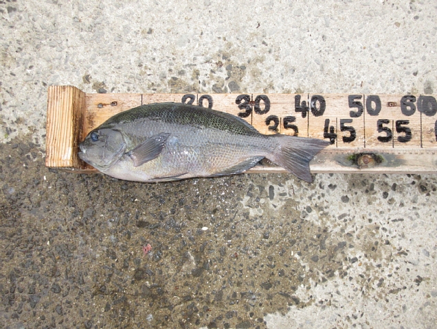 射場さん🙂 クチブトクロ44,5㎝2枚、40㎝、35㎝~33㎝を、フカセ釣りで釣られたそうです。その他、クチブトクロ30㎝、オナガクロ30㎝~足裏サイズも10枚以上釣られたそうですが、リリースされたそうです。合計7枚持ち帰えられてました。
