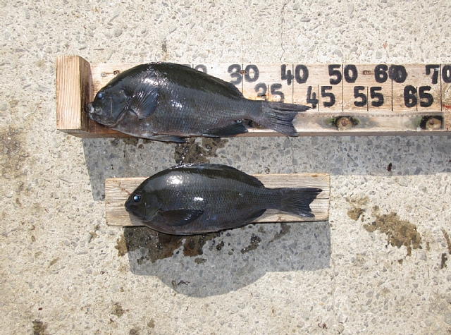 浜端さん🙂 クチブトクロ43,5㎝、37㎝を、フカセ釣りで釣られたそうです。その他、オナガクロ30㎝~足裏サイズも釣られたそうですが、リリースされたそうです。